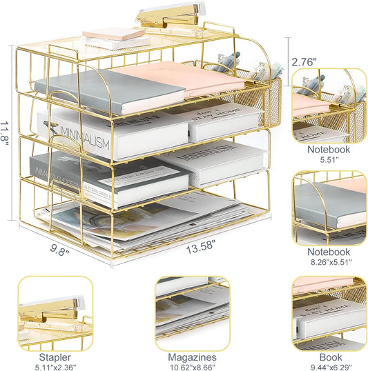 TNELTUEB Gold Paper Organizer for Desk with Pen Holder, 4 Tier Desk Organizers for Home and Office Stackable Letter Tray(Gold)Regular price KSh47,094.97Regular price KSh47,094.97 Sale priceUnit price / perKSh0.00Sold out