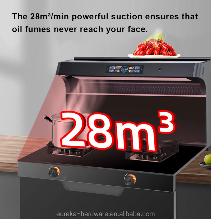 Featuring a powerful 1180Pa wind pressure and an OU-shaped duct design, it intelligently manages oil smoke concentration, ensuring a clean kitchen environment.