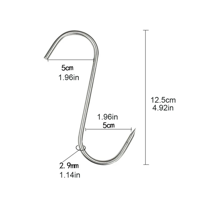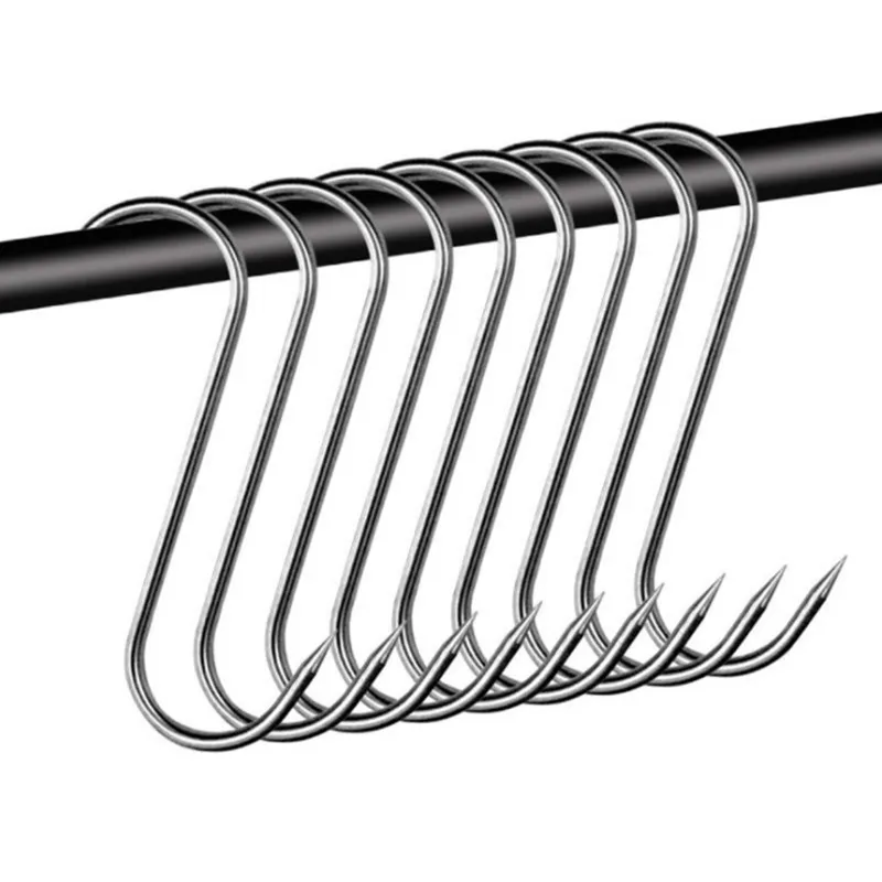 Stainless Steel S Hooks with Sharp Tip Utensil Meat Clothes Hanger Hanging Hooks for Butcher Shop Kitchen Baking Tools